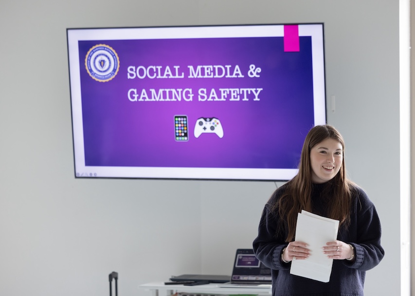 Presenters, Director of Community Safety & Outreach Tony Simmons and Deputy Director Gina Anselmo, shared tips on app usage, along with cautioning that popular online games, including Roblox and Fortnite, are frequently used by strangers to initiate contact with young people and reminded students never to respond to messages from unknown users.