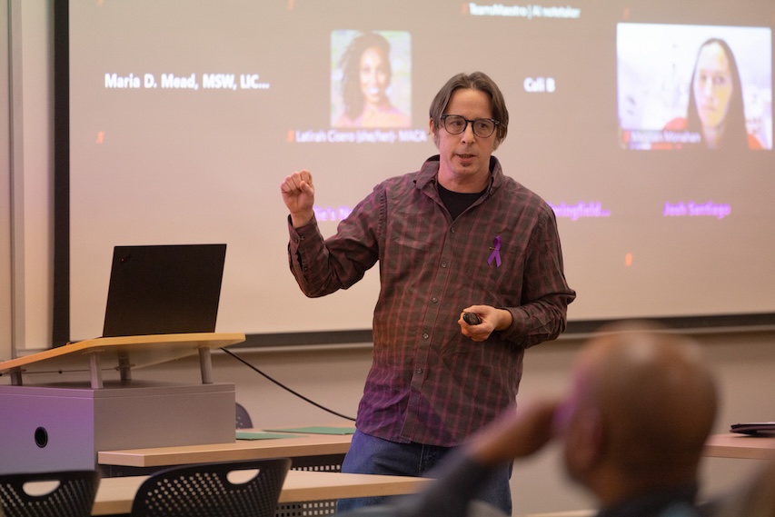 The second half of the meeting was led by speaker Gabe Quaglia from SADOD. Quaglia explained that SADOD stands with individuals across Massachusetts grieving substance-related deaths and provides peer-to-peer support at all stages of the grief journey.